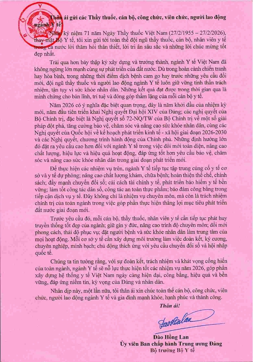 The Minister affirmed that the health sector will successfully complete the assigned tasks in 2026, contributing to building a more modern, equitable, efficient, and sustainable Vietnamese healthcare system, meeting the trust and expectations of the Party, the State, and the People.
